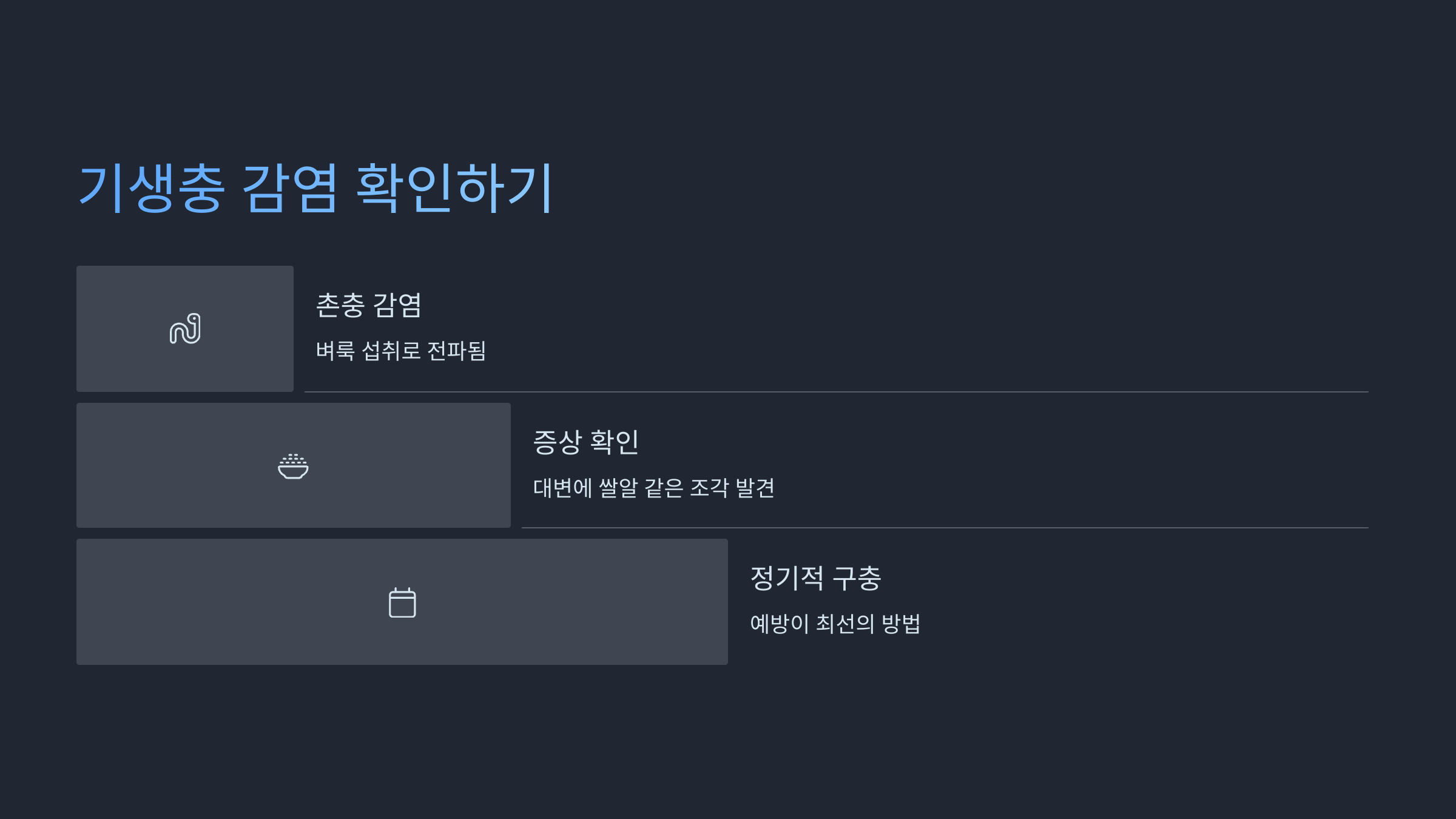 정기적인 구충을 하고 있는지 확인하고, 구충 시기가 지났다면 꼭 챙겨주세요.