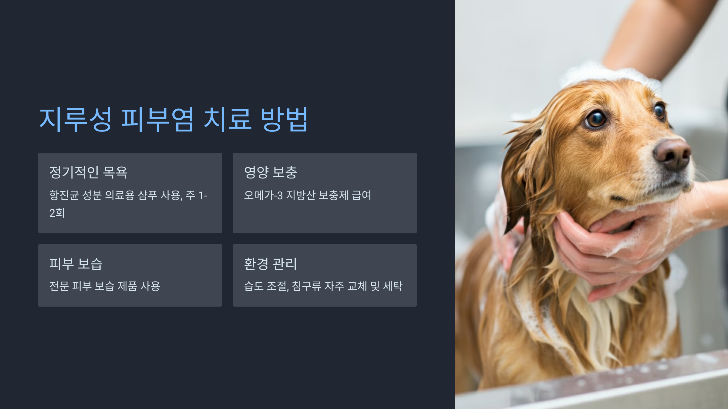 - 과도한 목욕은 피하기 (보통 월 1-2회 권장)