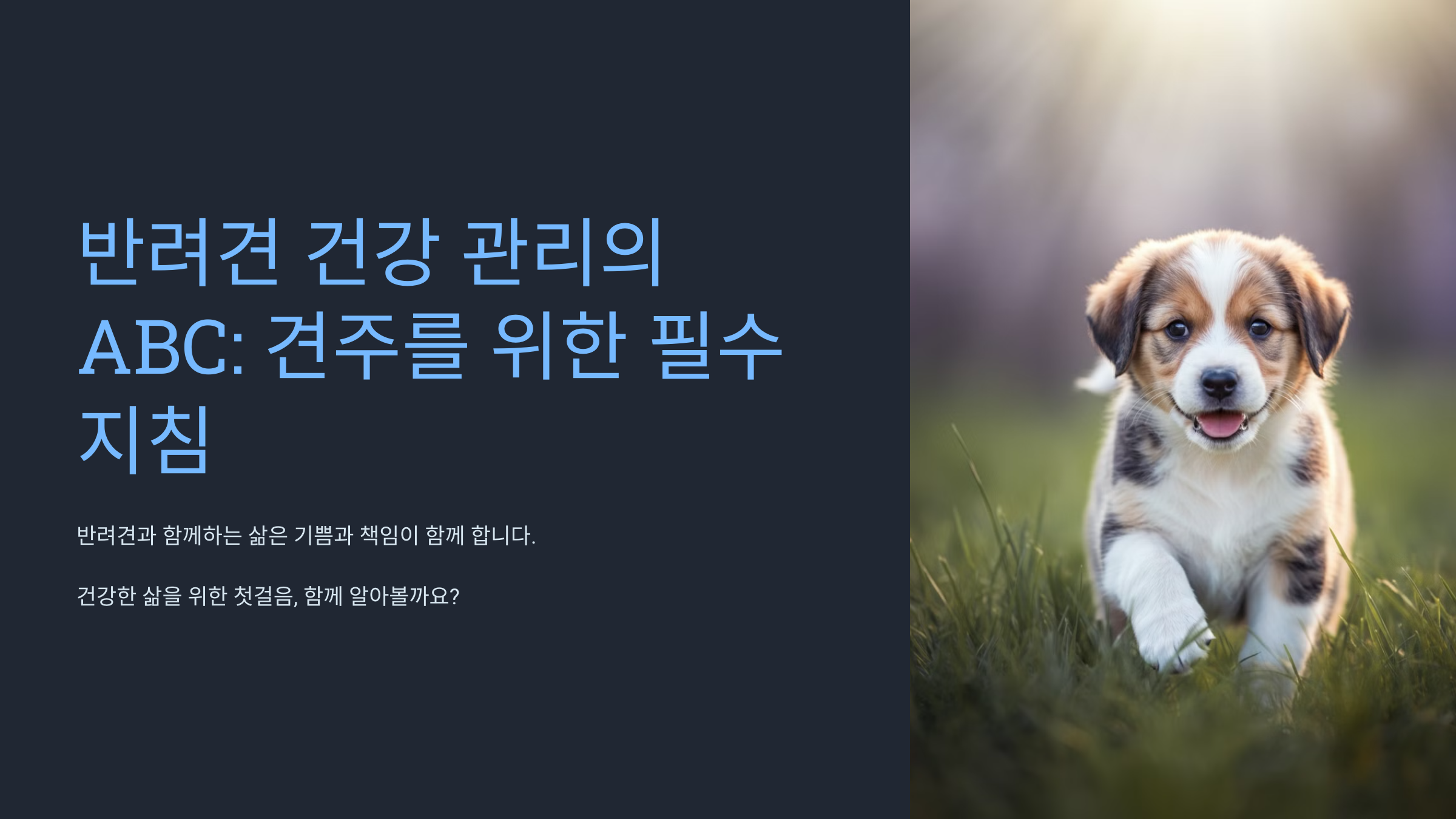 🐾🏥 반려견과 함께하는 삶은 기쁨과 책임이 공존합니다. 그 중에서도 가장 중요한 것은 바로 우리 반려견의 건강을 지키는 일입니다. 이 글에서는 모든 견주가 꼭 알아야 할 개 건강관리의 기본 지식을 자세히 알아보겠습니다. 여러분의 소중한 반려견이 건강하고 행복한 삶을 살 수 있도록 함께 배워보아요!
