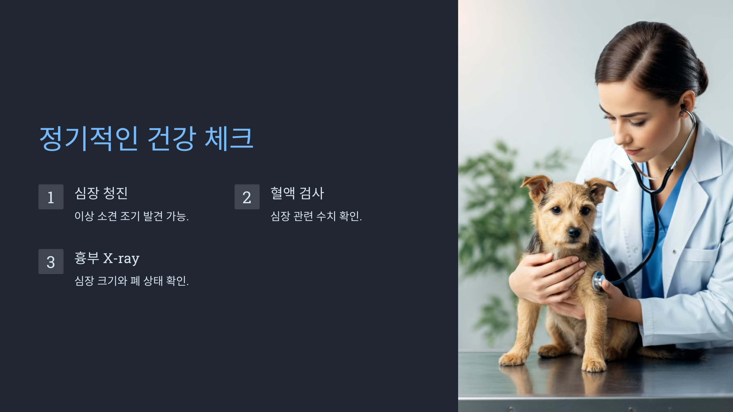 강아지의 심장 건강 관리는 결코 어려운 일이 아닙니다. 규칙적인 운동, 균형 잡힌 식단, 그리고 정기적인 건강 체크만으로도 많은 것을 예방하고 개선할 수 있어요.