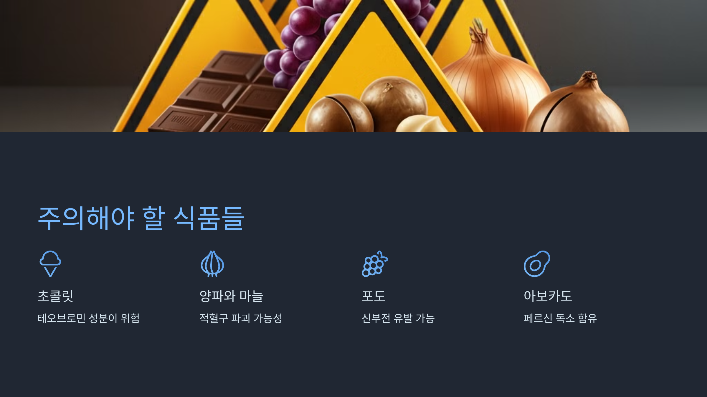 이외에도 많은 인간 음식들이 개에게는 해로울 수 있으니 주의가 필요합니다.