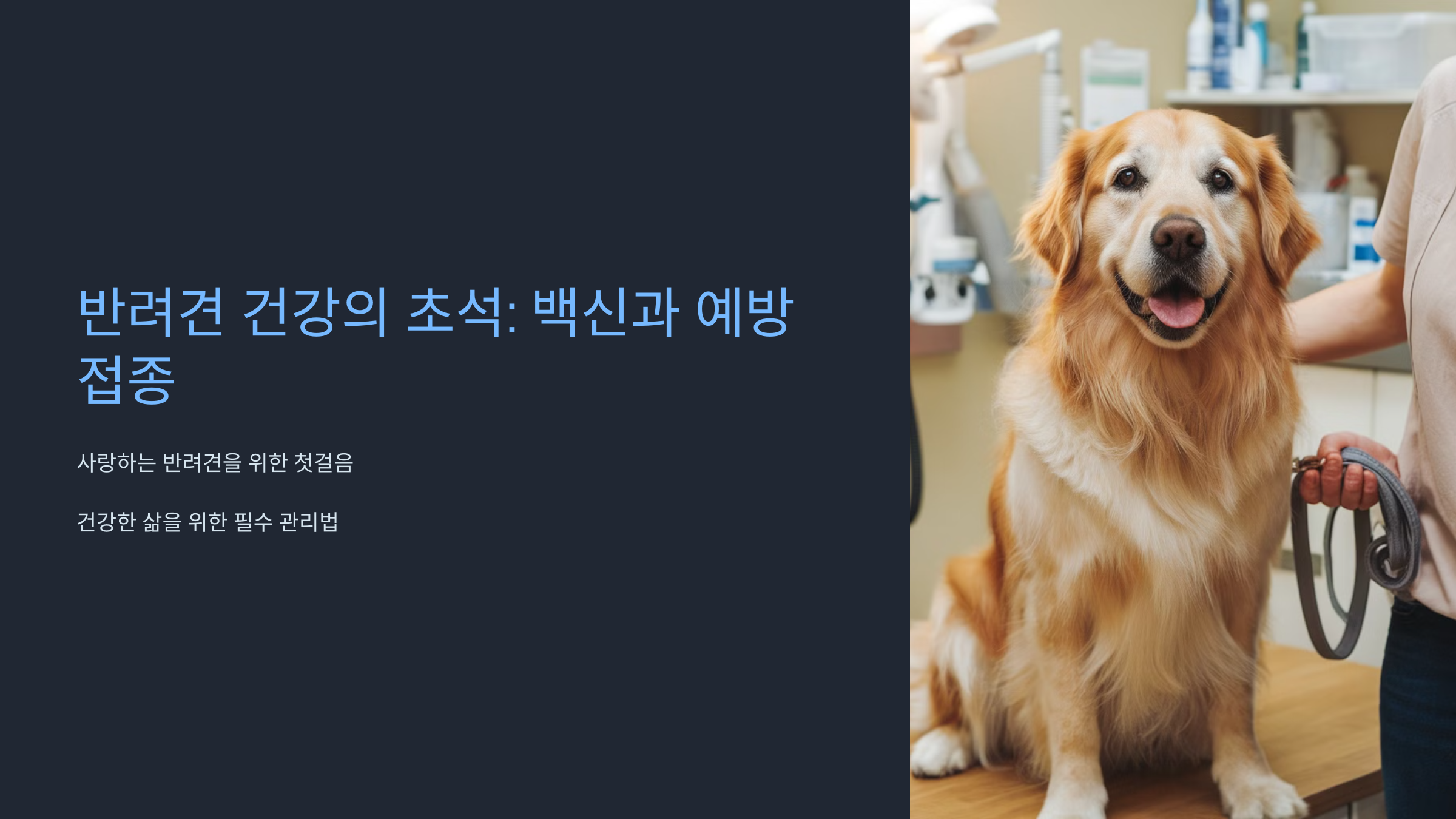 반려견을 위한 백신과 예방접종은 단순한 의료 행위가 아닙니다. 그것은 우리의 사랑과 책임을 행동으로 옮기는 첫걸음입니다. 정기적인 백신 접종으로 우리 반려견들이 더 건강하고 행복한 삶을 살 수 있도록 도와주세요.