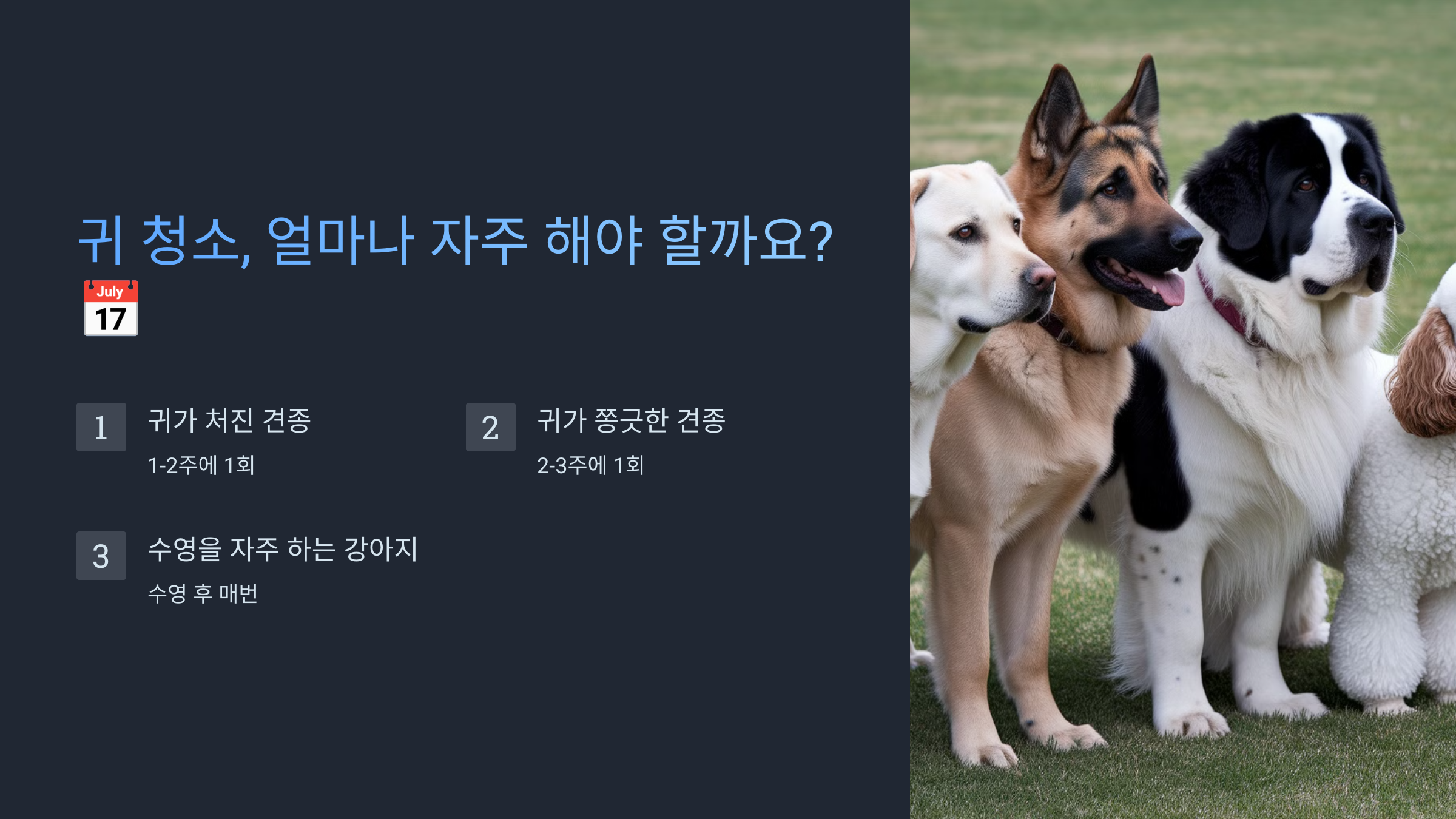 - 귀가 처진 견종: 1-2주에 1회
