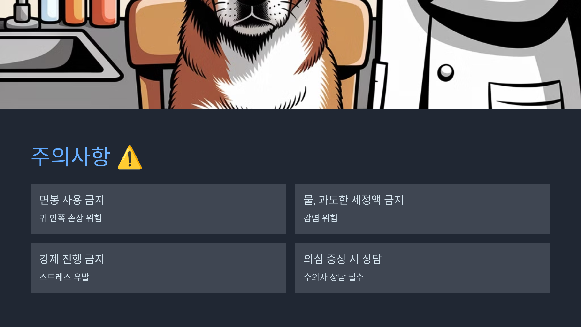- 의심스러운 증상이 있다면 반드시 수의사와 상담하세요.