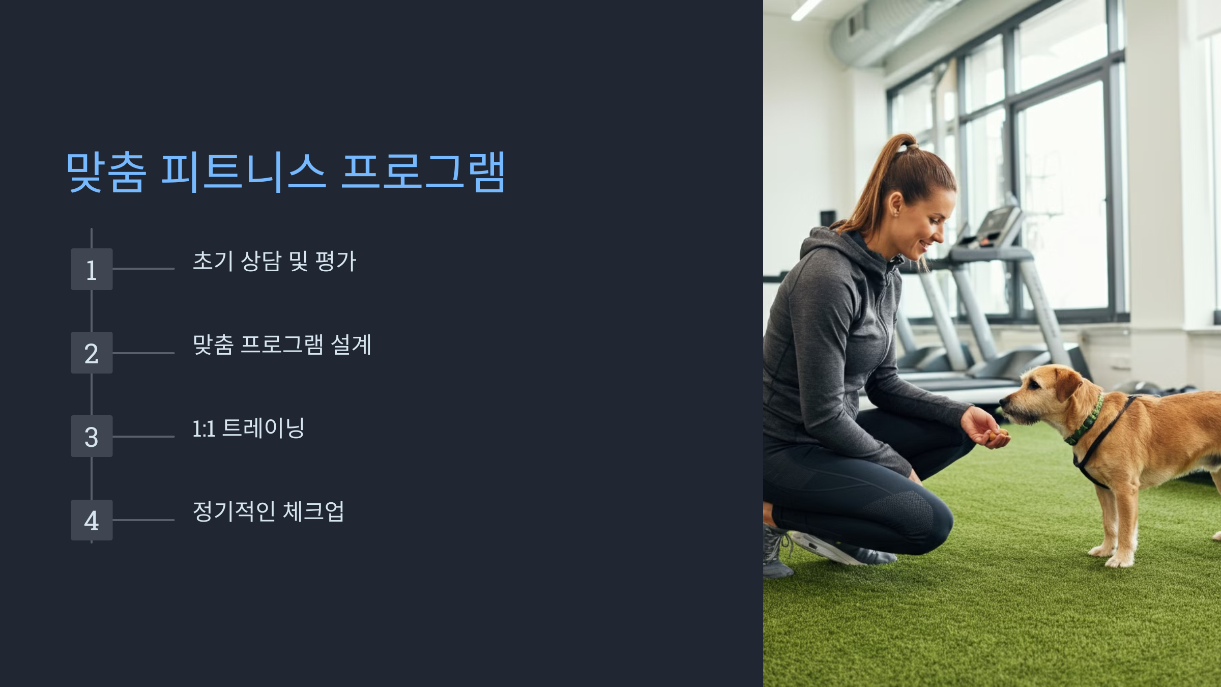 - 맞춤 프로그램 설계: 개별 반려견에 적합한 운동 계획 수립