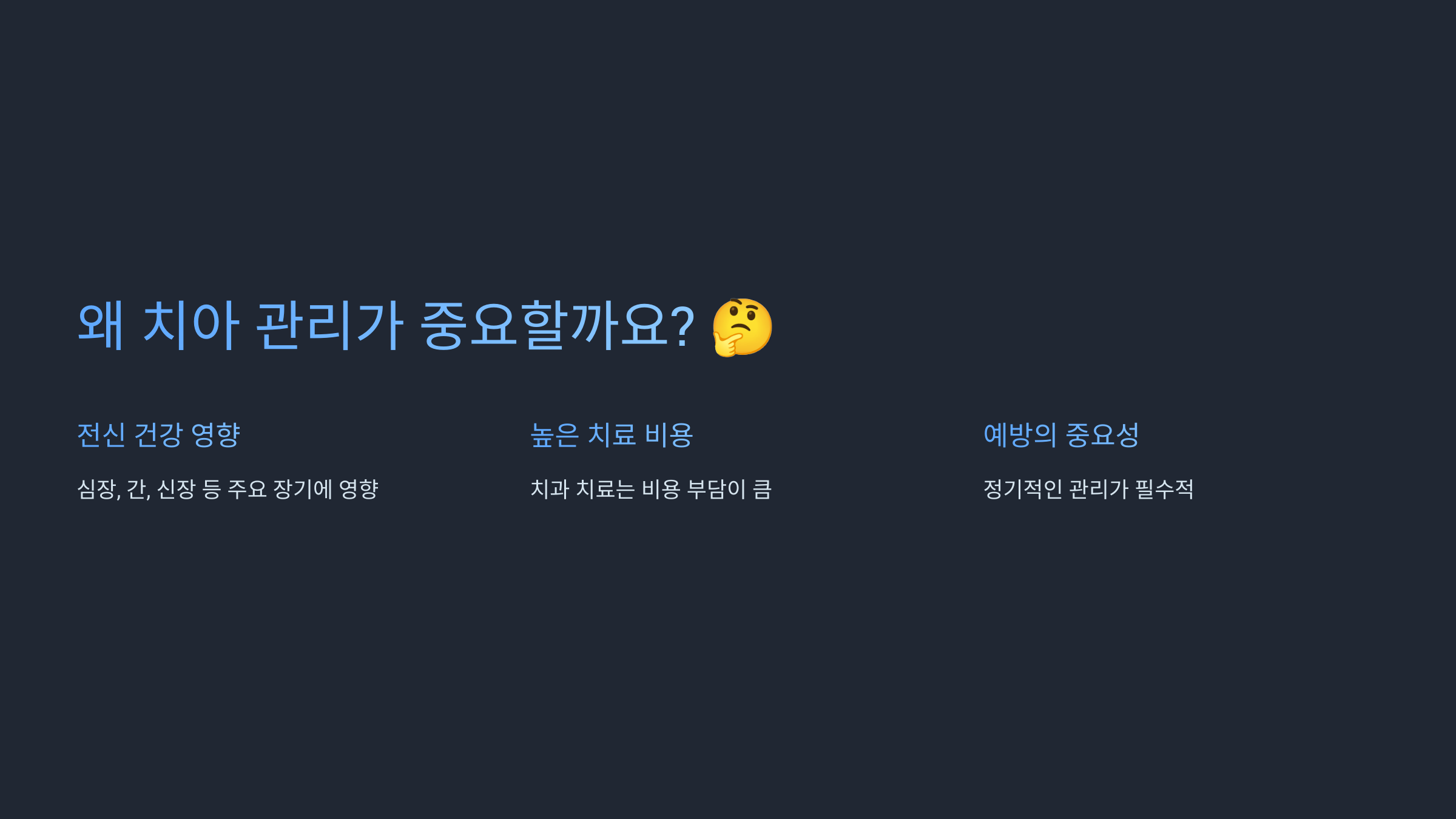 - 치주 질환에 더 취약해지는 시기입니다.