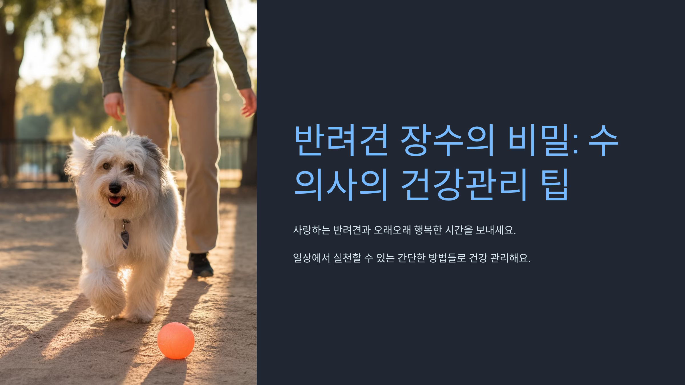 안녕하세요, 반려견을 사랑하는 여러분! 오늘은 제가 수의사로 일하면서 깨달은 '반려견 장수의 비밀'에 대해 이야기해보려 합니다. 우리 모두 사랑하는 반려견과 오래오래 행복한 시간을 보내고 싶잖아요? 🐶❤️
