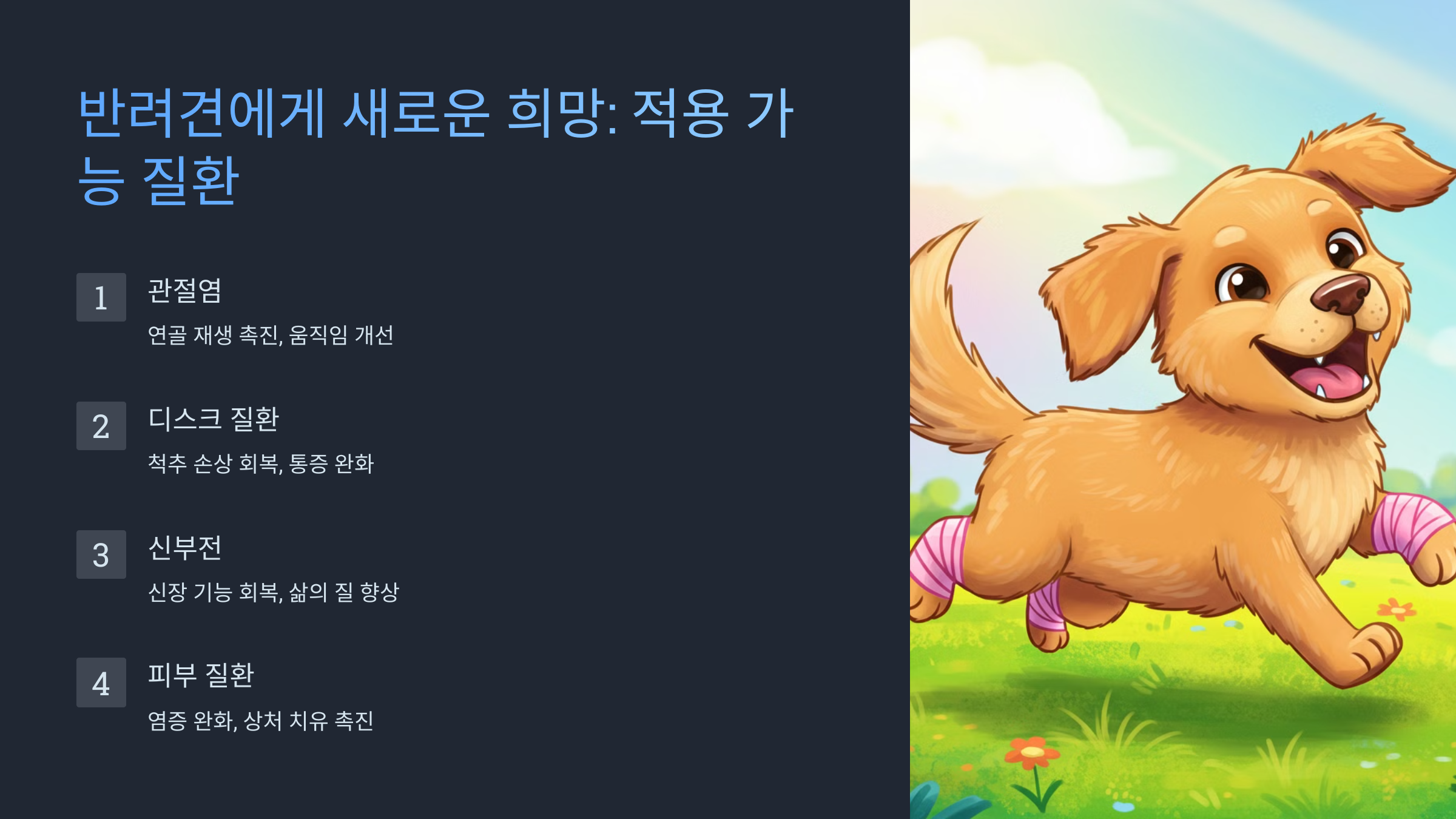 - 반려견의 삶의 질을 크게 개선할 수 있습니다.