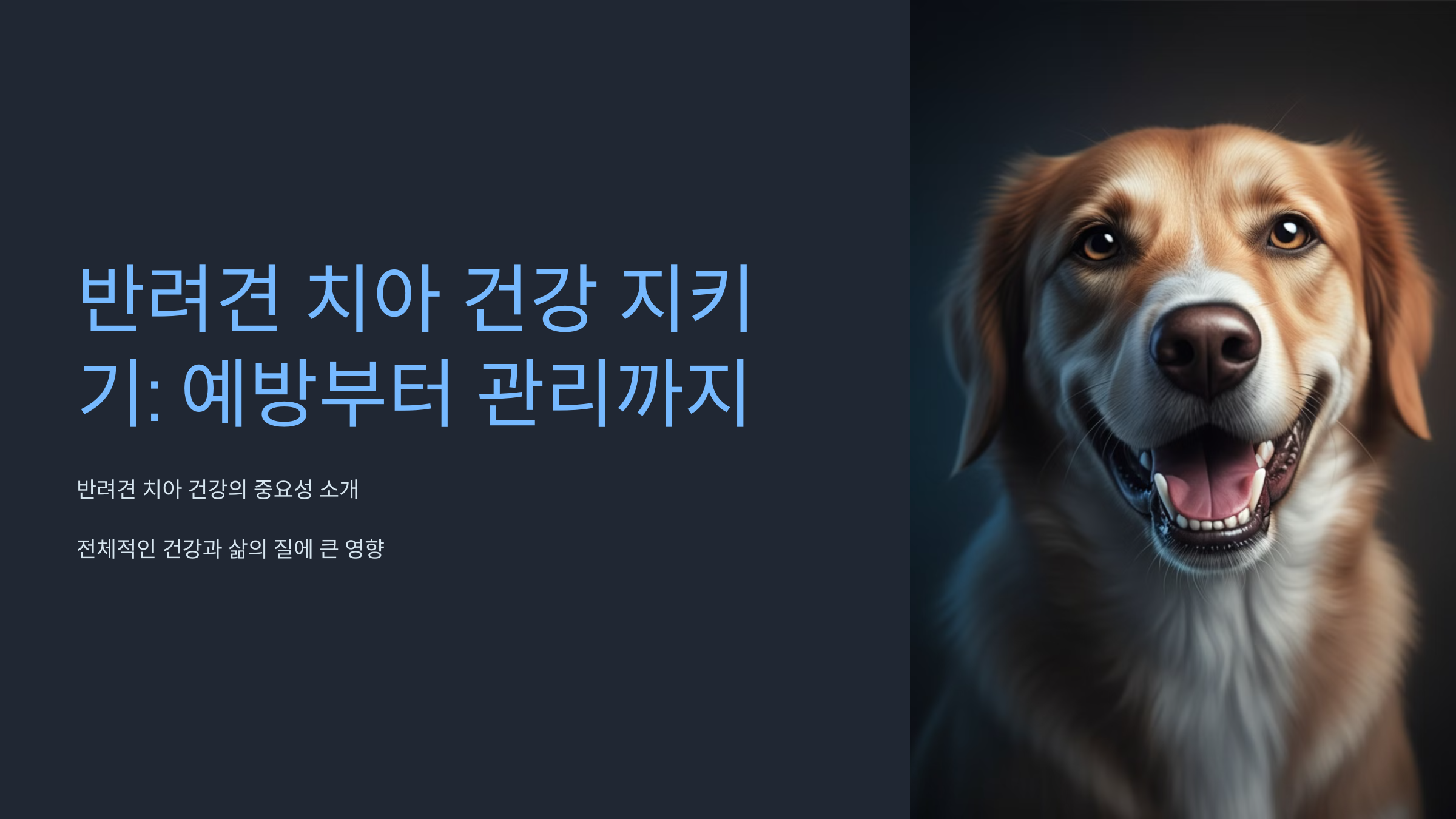안녕하세요, 반려견 가족 여러분! 🙋♂️ 오늘은 우리 귀여운 친구들의 건강에 꼭 필요하지만 종종 간과되는 주제, 바로 '반려견 치아 건강'에 대해 이야기해보려 합니다. 여러분, 혹시 우리 강아지의 이를 꼼꼼히 살펴본 적 있으신가요? 사실 반려견의 치아 건강은 전체적인 건강과 삶의 질에 큰 영향을 미칩니다. 이 글을 통해 반려견 치아 관리의 중요성부터 실제 관리 방법까지 상세히 알아보겠습니다. 우리 함께 반려견에게 건강한 미소를 선물해볼까요?