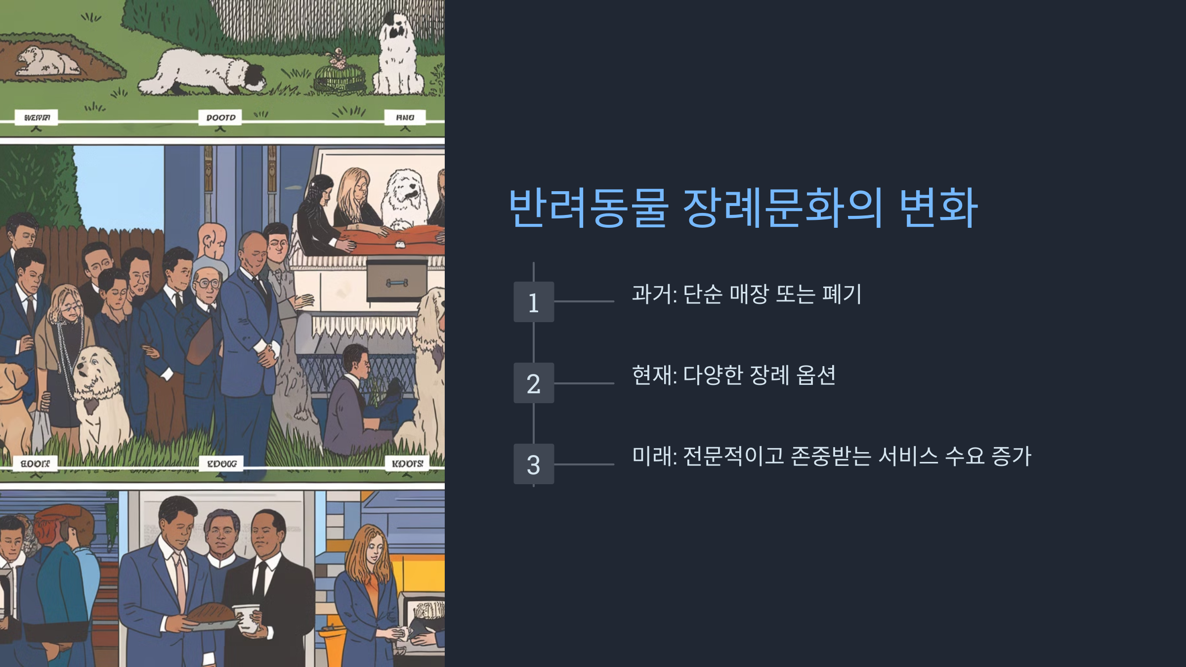 최근 반려동물을 가족으로 여기는 문화가 확산되면서, 반려동물 장례문화도 크게 변화하고 있습니다. 과거에는 단순히 매장이나 폐기 처분으로 끝났던 것이, 이제는 화장, 수목장, 납골 등 다양한 옵션이 생겨나고 있죠.