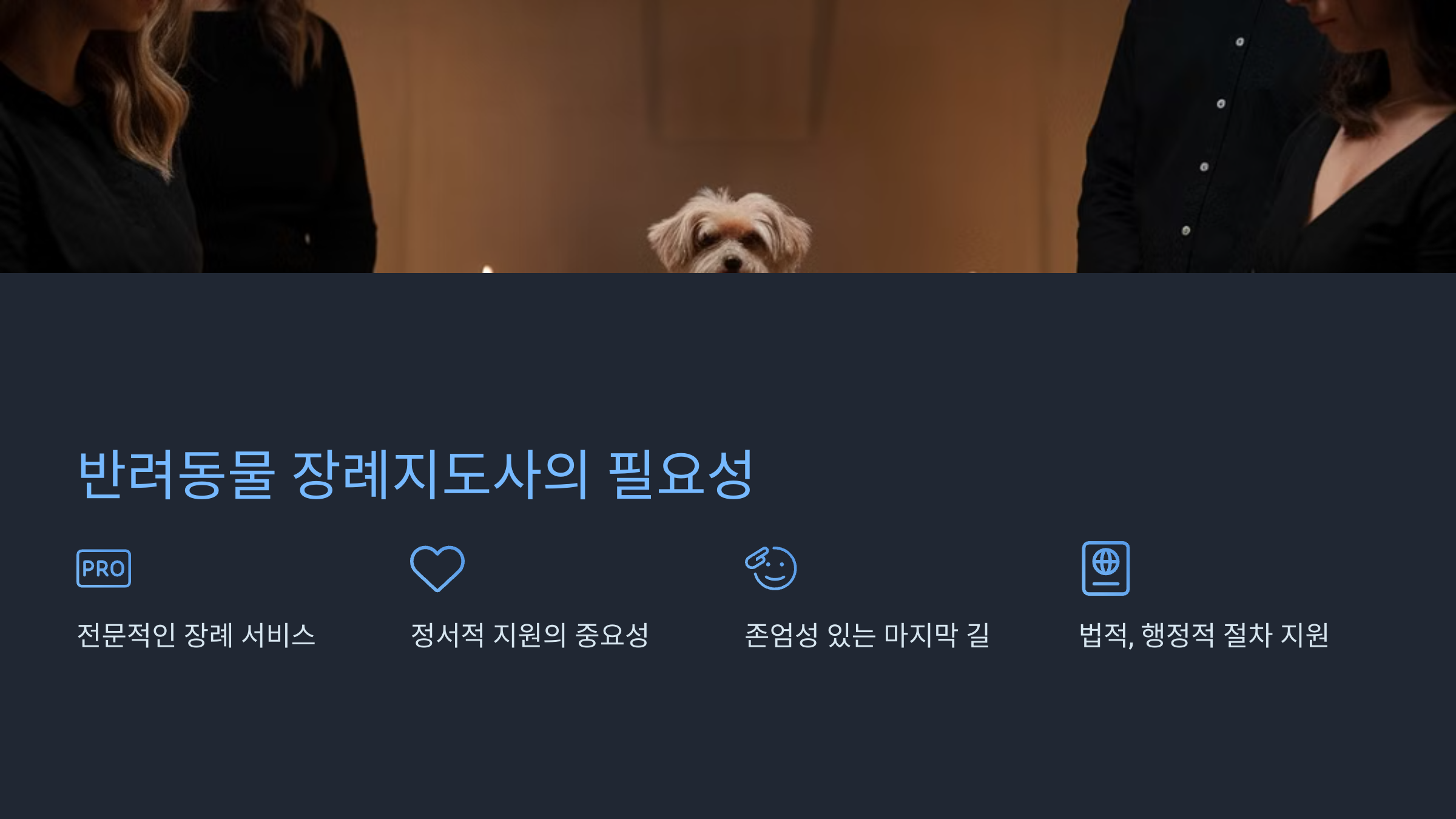 반려동물 장례에도 전문성이 필요합니다. 법규 준수, 위생적인 처리, 다양한 장례 옵션 등 전문 지식을 바탕으로 한 서비스가 필요합니다.