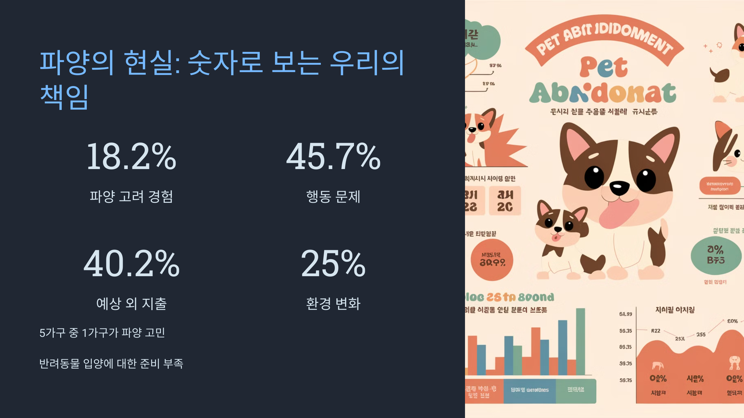 이러한 통계는 우리 사회가 반려동물 입양에 대한 충분한 준비와 이해가 부족하다는 것을 보여줍니다.