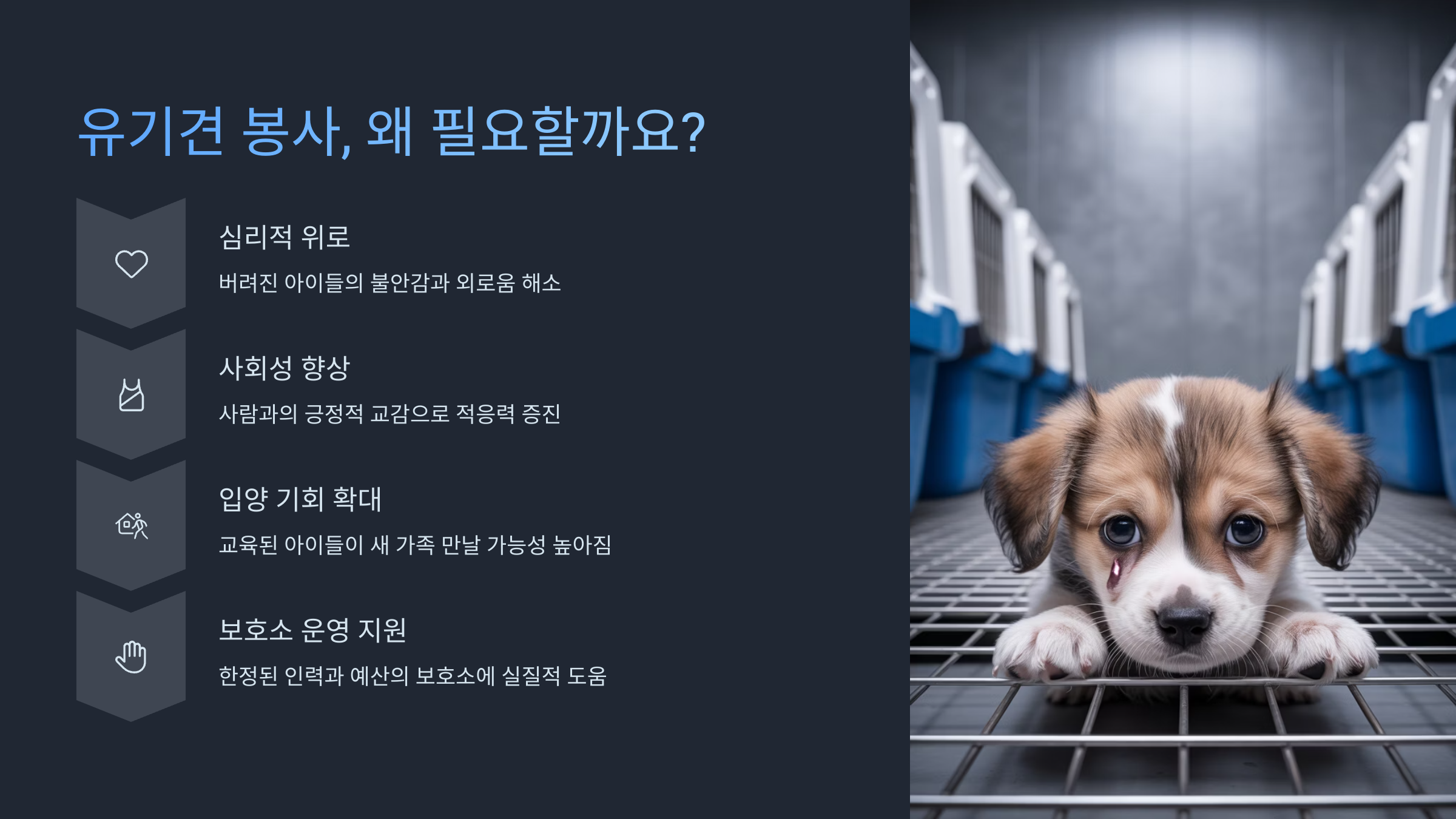 결국 유기견 봉사는 단순히 동물을 돕는 것을 넘어,