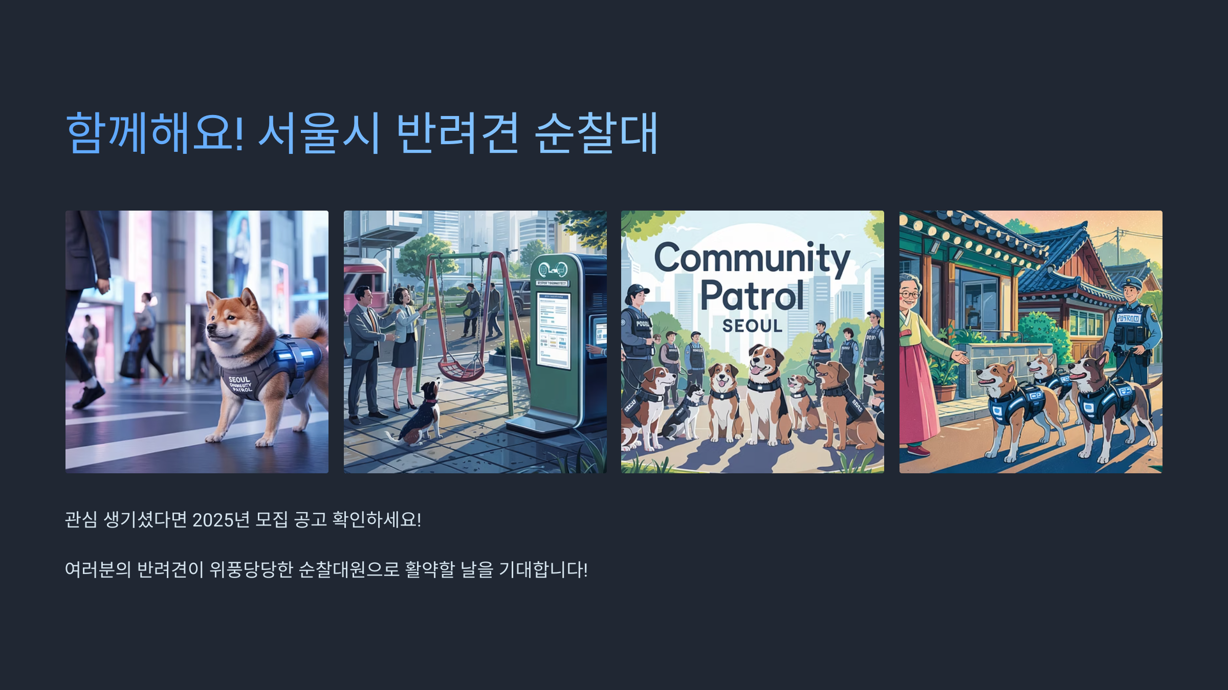우리 동네는 내가 지킨다! 🐾 위풍당당 "2025년 서울시 반려견순찰대" 모집 시작!