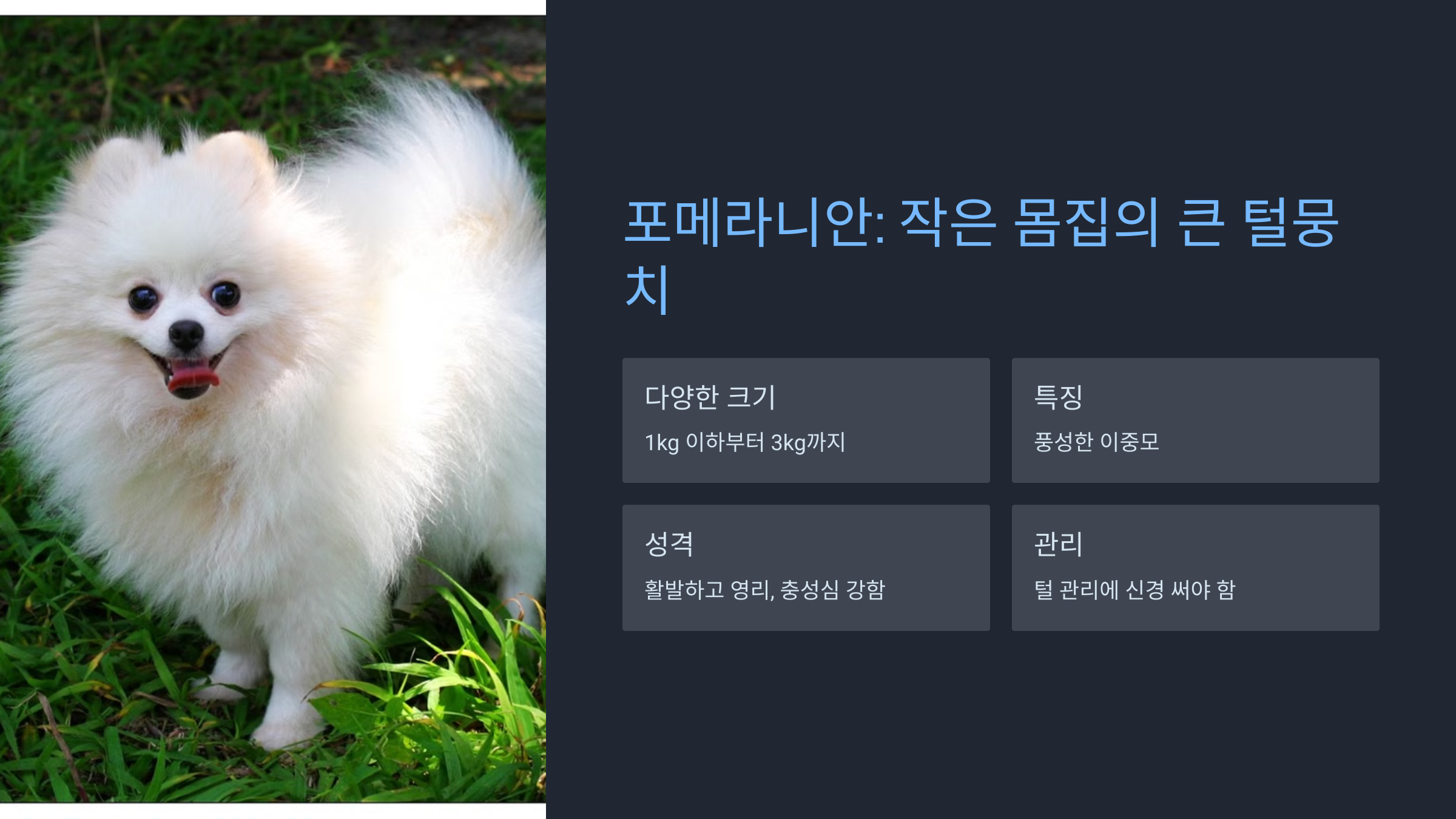- 주의사항: 털 관리에 신경 써야 함