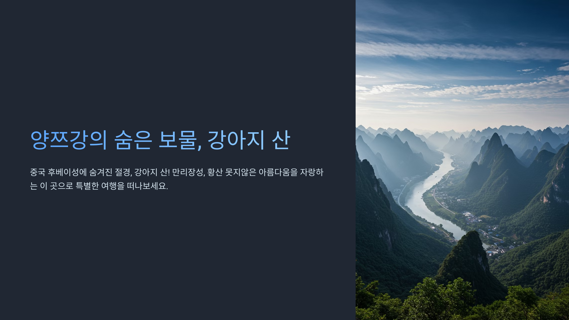 여러분, 중국의 아름다운 자연 경관을 떠올리면 어떤 이미지가 떠오르시나요? 만리장성? 아니면 황산의 절경? 오늘은 이들 못지않게 breathtaking한, 하지만 상대적으로 덜 알려진 보물 같은 장소를 소개해드리려 합니다. 바로 양쯔강 유역에 위치한 '강아지 산'입니다! 🐶