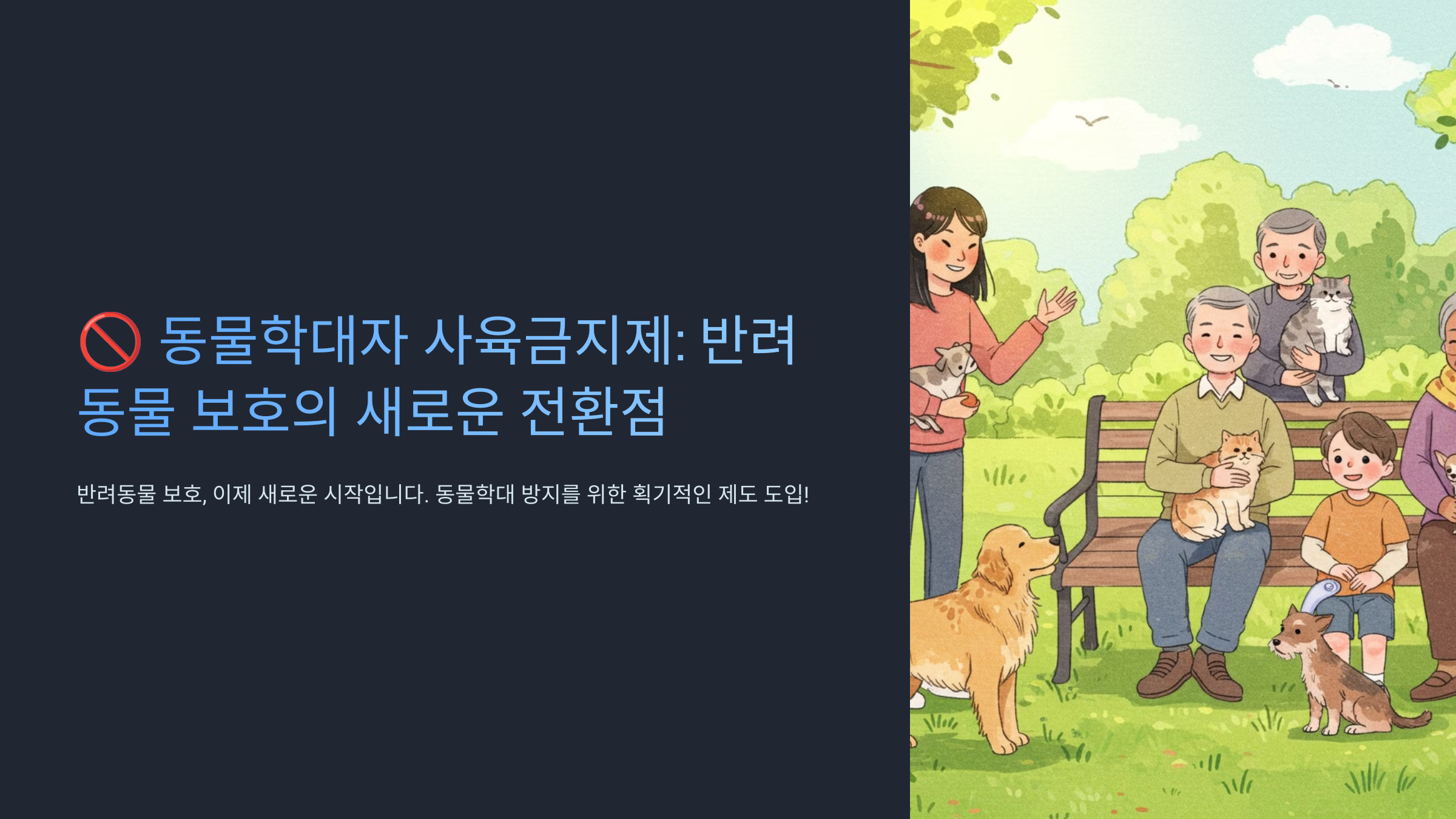 여러분, 반려동물을 가족처럼 여기는 시대가 왔습니다. 하지만 안타깝게도 동물학대 사건은 여전히 끊이지 않고 있죠. 이에 정부가 획기적인 대책을 내놓았습니다. 바로 '동물학대자 사육금지제도'입니다. 이 제도가 우리 사회에 어떤 변화를 가져올지, 함께 살펴볼까요?