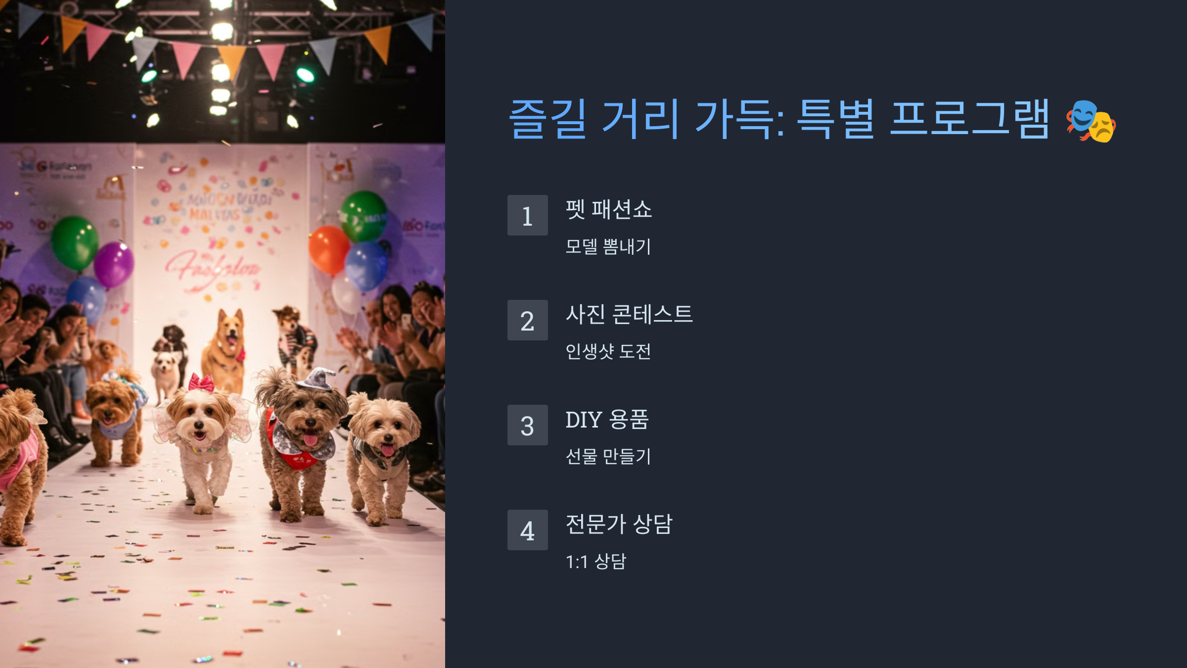 - 펫 패션쇼: 우리 아이의 숨겨진 모델 재능을 뽐내보세요!